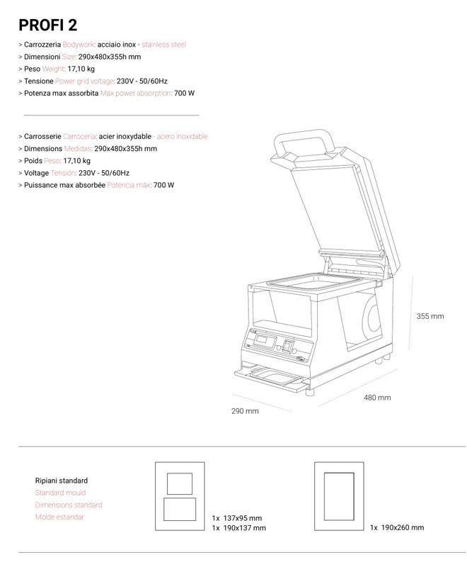 Profi 2 комплектується матрицями: 137x95 і 137x190 мм. або 190х260 мм. (на вибір).