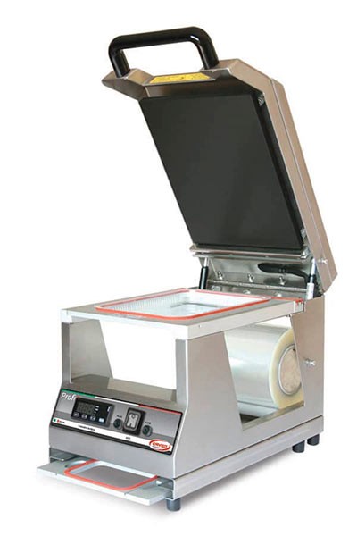 Зварювач лотків Orved Profi 2 запаевает продукти в лотки спеціальної термостійкої плівкою.