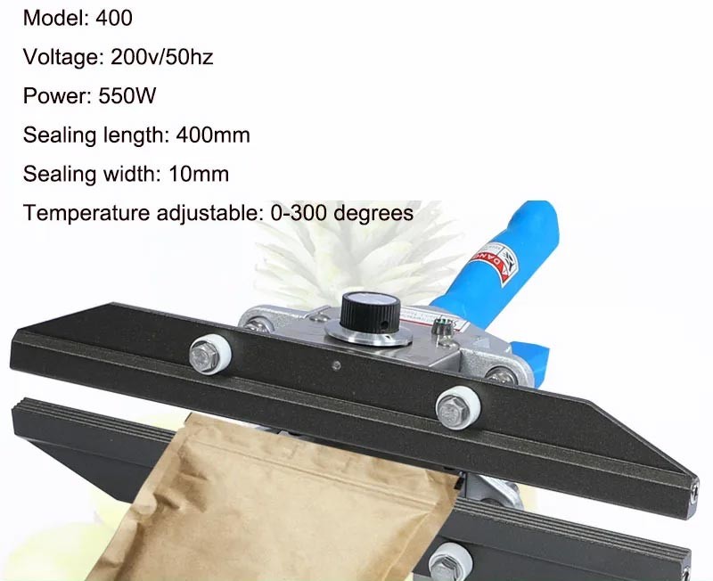 Переносний ручний зварювач постійного нагріву Vektor FKR-400 використовується для запаювання реторт пакетів, ламінованого паперу, багатошарових плівок. Постійне нагрівання дає можливість запаювати плівки великої товщини.