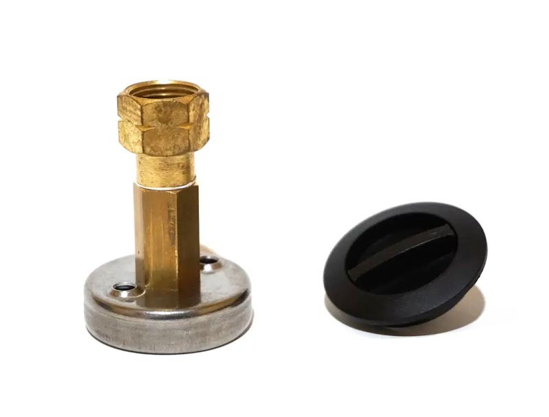 Накидна гайка на вентиль виготовлена з латуні, а гніздо перехідника під заправний пістолет із нержавіючої сталі та має пластикову запобіжну кришку.