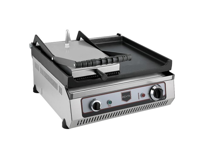 Поверхня смажена з притискним грилем Remta R87T призначена для смаження овочевих, рибних і м'ясних страв, а також для приготування паніні, шаурми, гамбургерів, стейків, хот дога, булочок.