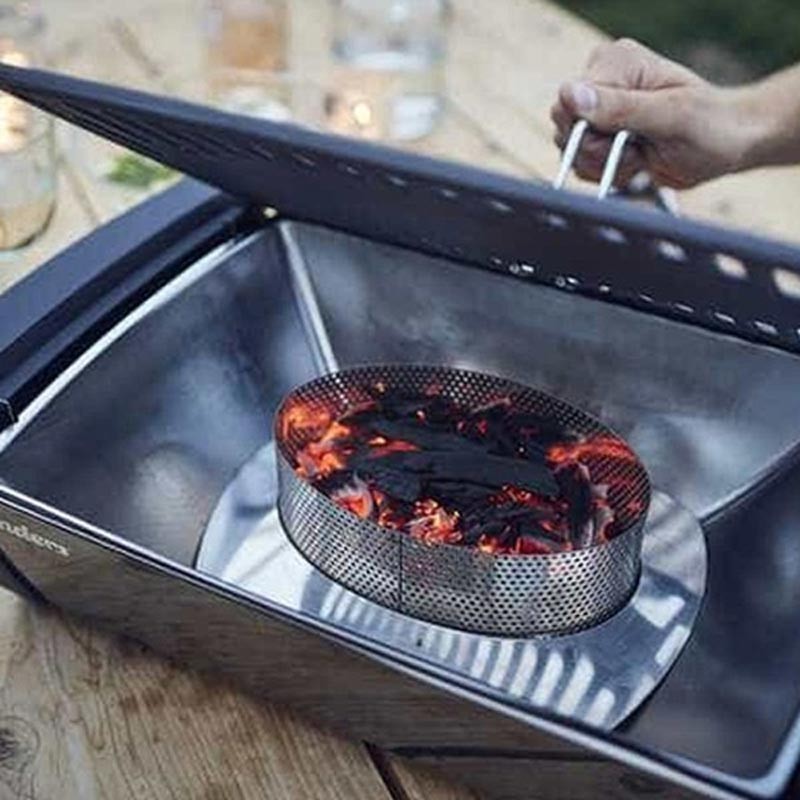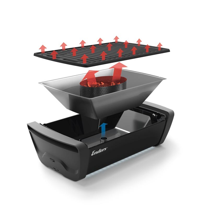 Быстрый розжиг углей благодаря технологии поддува E-FAN BBQ с плавной регулировкой работы.