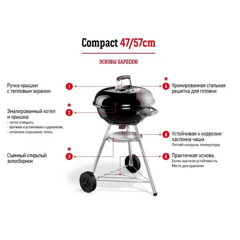 Обзор Угольный гриль Weber Compact Kettle 47 см, черный (1221004)
