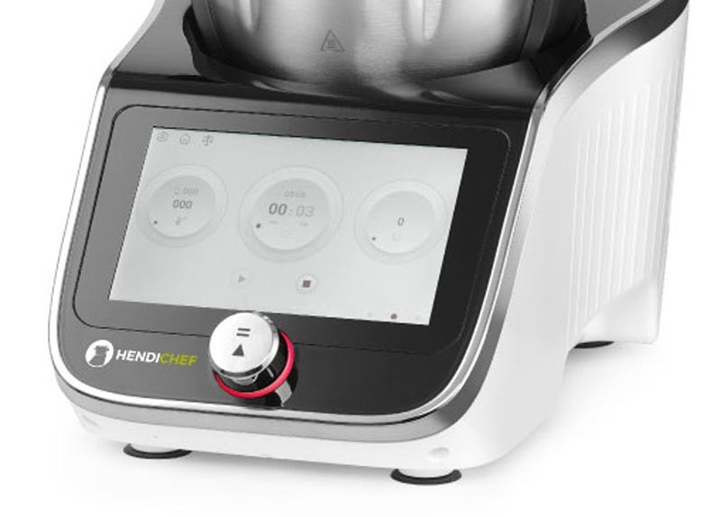 HendiChef IPC Hendi 221761 - универсальный кухонный комбайн единственный в своем роде. Благодаря специальным ножам он может работать как миксер или как куттер для твердых ингредиентов. Эти возможности дополняются системой нагрева, с помощью которой можно готовить любую пищу в диапазоне +37 - +130 C, при этом перемешивая на разных скоростях.