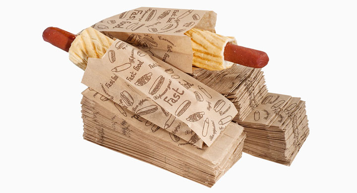 Пакет из коричневого пищевого крафта с рисунком Fast Food.
