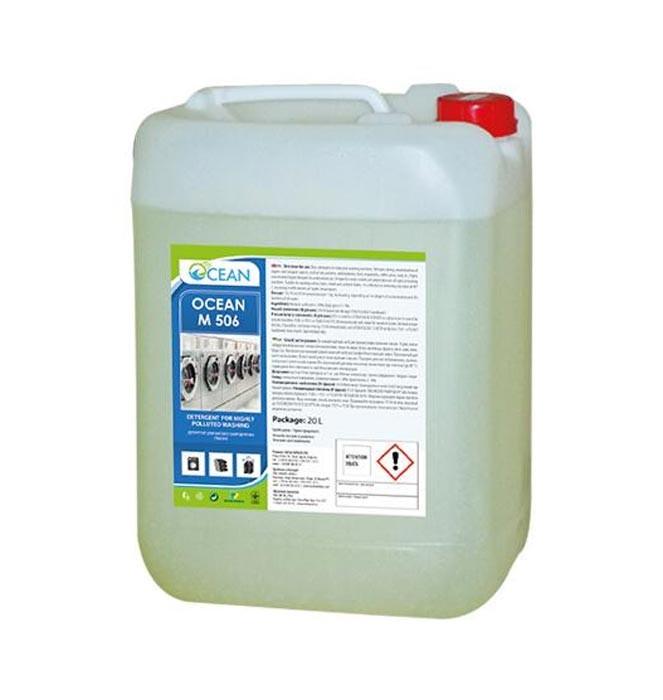 Усилитель для стирки сильнозагрязненного белья OCEAN М-506 (Оушн М-506) рекомендован для стирки спецодежды и ресторанного белья. Удаляет жировые, масляные и пигментные пятна, без фосфатов.