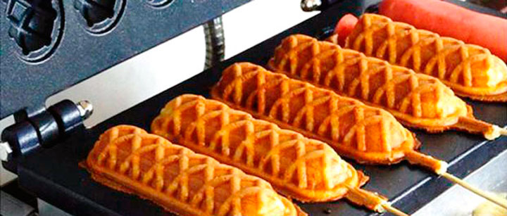 С помощью вафельницы Frosty WBS-6S покупателю можно предложить оригинальный продукт - сосиска на деревянной палочке, запеченная в фигурном тесте. Аппарат подходит также и для приготовления запеченных фруктовых начинок в тесте (например, с бананом).