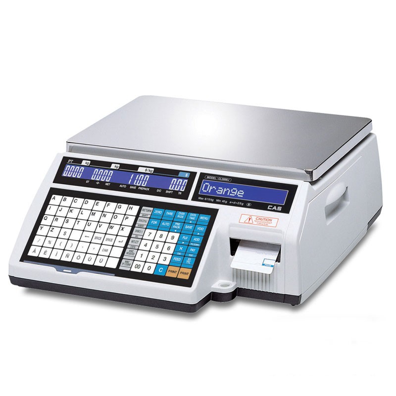 Торговые весы с печатью этикеток CAS CL5000J-IB: высокоскоростной принтер, легкодоступный картридж, простота проведения настроек, гибкая и надежная работа в сети, многофункциональное программное обеспечение.