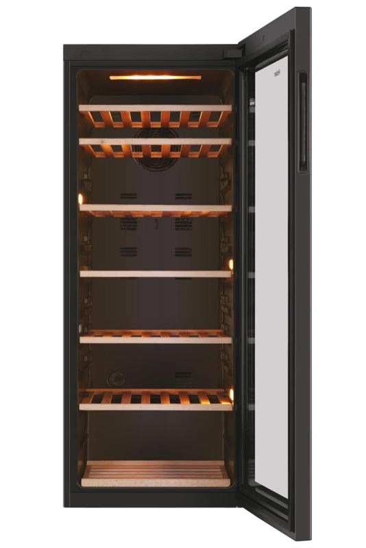 Запатентованная система природного воздушного потока: благодаря точным датчикам температуры и влажности вентилятор и компрессор работают вместе, чтобы поддерживать уровень влажности 50-70%, который есть на профессиональном винодельне. Вода из резервуара в нижней части винного холодильника превращается во влагу, а антигравитационный поток воздуха гарантирует распределение по всему интерьеру.