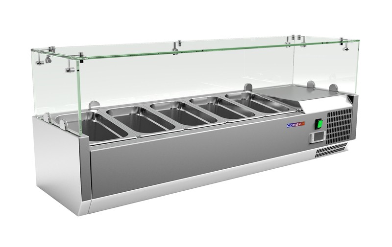 Настольная барная холодильная витрина Cooleq VRX 1200/330 прекрасно подходит для кратковременного хранения и демонстрации, предварительно охлажденных продуктов (салатов, закусок, гарниров) в магазинах, кафе, барах, ресторанах, суши-барах. Наиболее широко применяются в пиццериях для хранения топпинга (начинки для пиццы).
