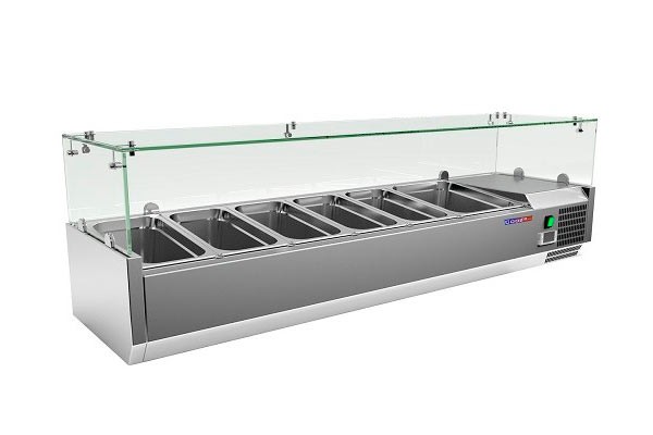 Настольная барная холодильная витрина Cooleq VRX 1500/380 прекрасно подходит для кратковременного хранения и демонстрации, предварительно охлажденных продуктов (салатов, закусок, гарниров) в магазинах, кафе, барах, ресторанах, суши-барах. Наиболее широко применяются в пиццериях для хранения топпинга (начинки для пиццы).
