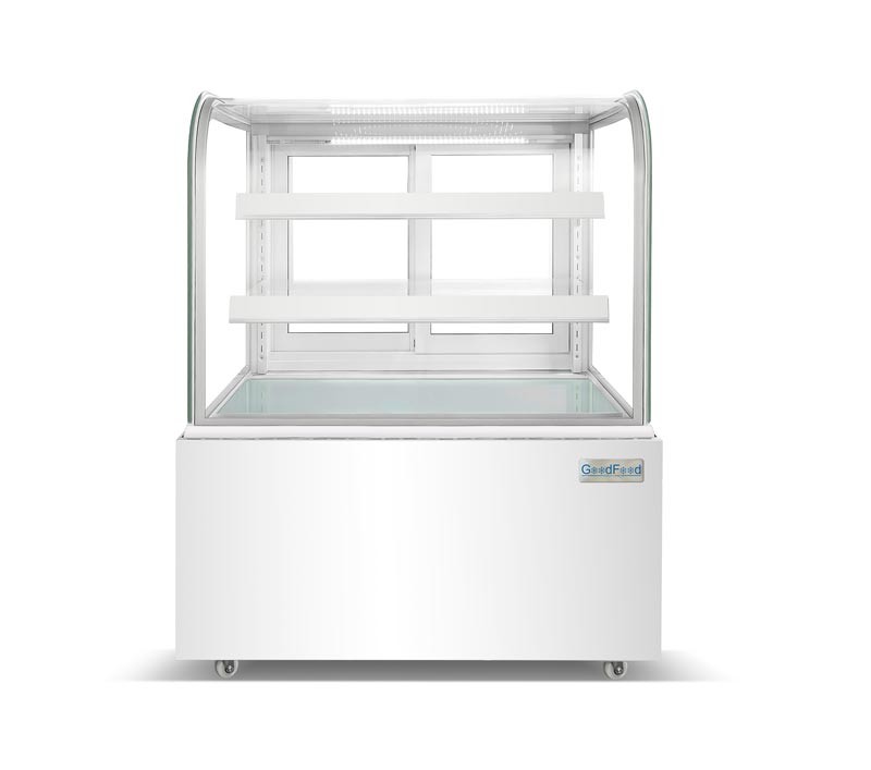 Напольная кондитерская холодильная витрина GoodFood FW270R белая прекрасно подходит для демонстрации выпечки, тортов, пирожных. Панорамный обзор представляют товар с наилучшей стороны.