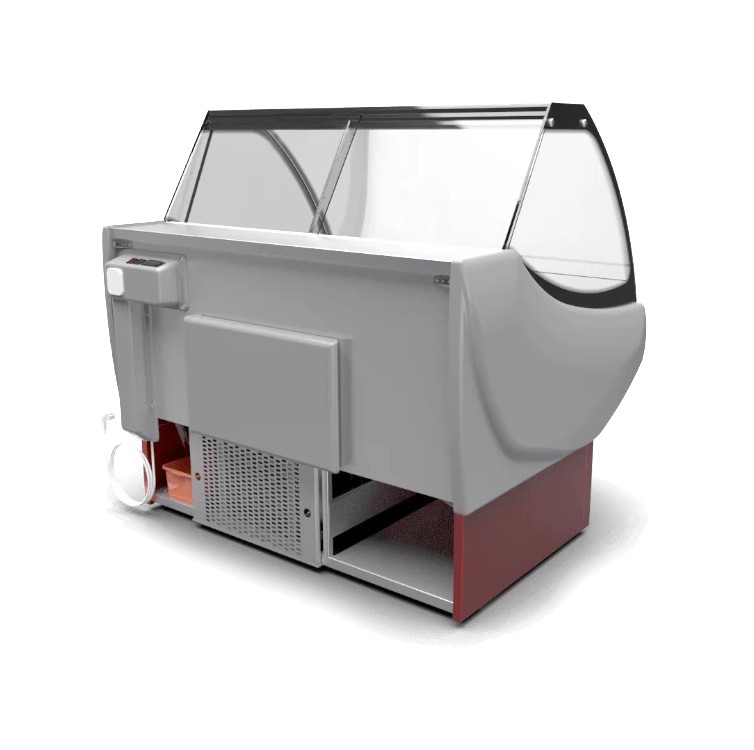 Материал демонстрационной части и полки продавца: нержавеющая сталь.