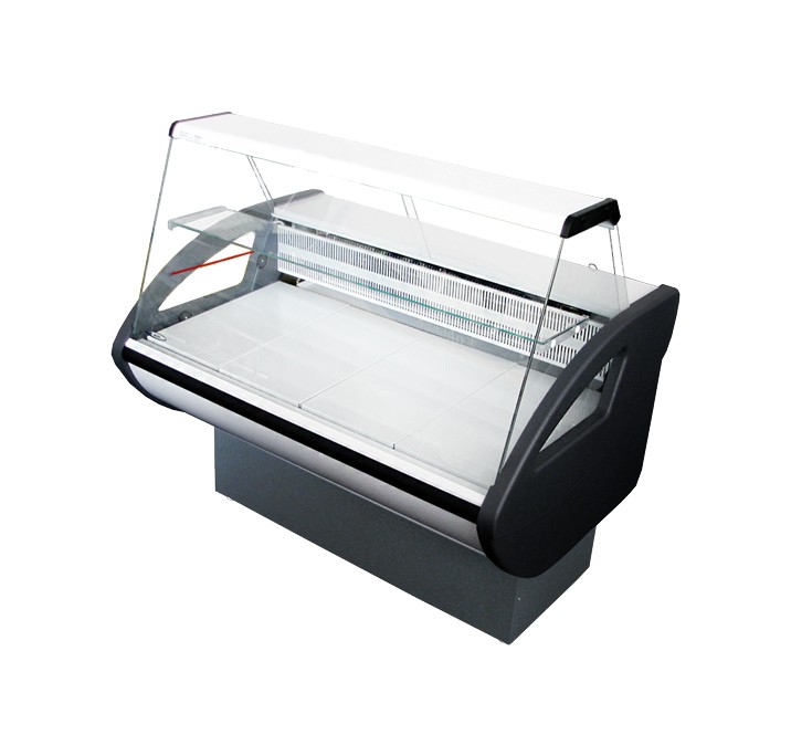Экспозиционная площадь, столешница продавца из оцинкованной стали с полимерным покрытием (в витрине с прямым фронтальным стеклом) или из нержавеющей стали в витрине с гнутым лобовым стеклом.