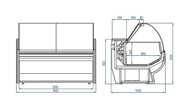 Возможность изготовления витрин как со встроенным холодильным агрегатом, так и под выносное холодоснабжение.