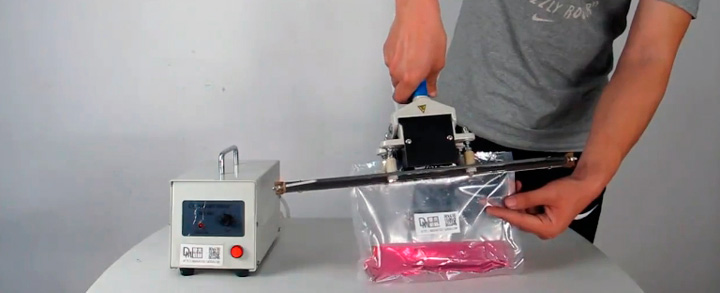 Переносной запайщик с высокой мощностью используется для запайки толстых полимерных материалов или пакетов с остатками пыли или влаги.