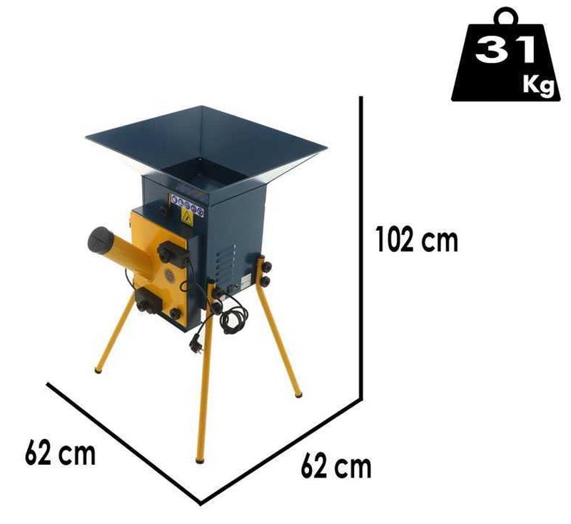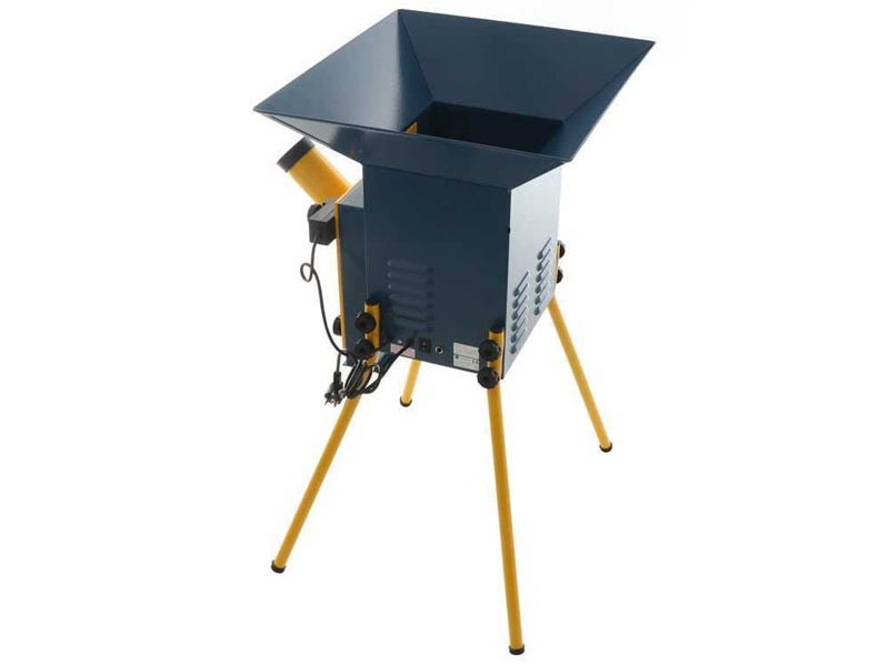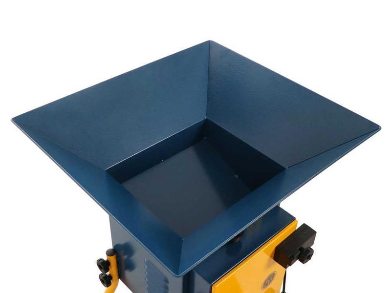 Специальная заслонка регулирует количество загружаемого зерна, которое из бункера попадает в зернодробильную камеру; здесь ступица с 20 молотками, приводимая в движение мощным двигателем, позволяет получить муку или сечку различного помола, подходящую для кормления животных.