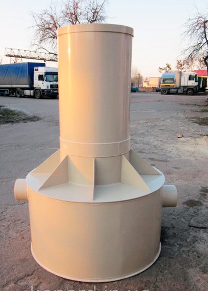Наличие гасителя напора, технологических перегородок и перегородки предотвращающей попадание плавающего жира в канализацию.