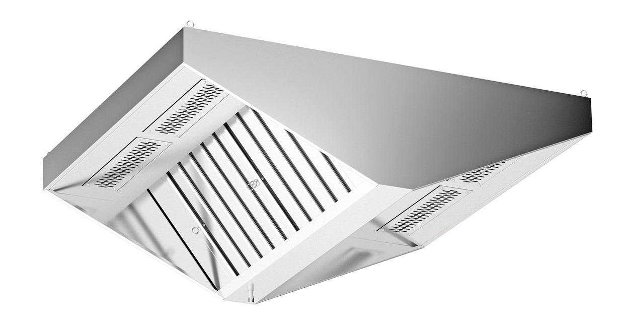 Промышленный приточно-вытяжной островной зонт используется на кухне ресторана, кафе, столовой.