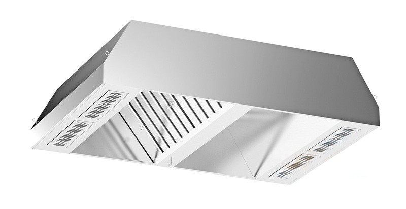 Промышленный приточно-вытяжной островной зонт используется на кухне ресторана, кафе, столовой.